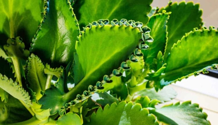 - Kalanchoe Daigremontiana: Its green leaves, sometimes with purple stripes, produce plantlets that range in color from green to pink.