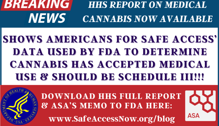 For over 2 decades Americans for Safe Access (ASA)  has been advocating for a change in the scheduling of cannabis to recognize its medical use. We are excited to see that the Food & Drug Administration (FDA) incorporated many of our suggestions into their approach to the scheduling process and were able to utilize ASA’s data in reaching their conclusion that cannabis does in fact have accepted medical use.