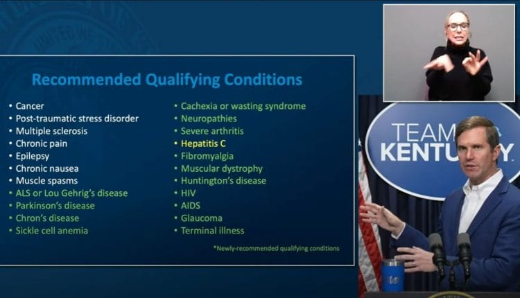 Beshear said two independent advisory boards recommended that Kentucky’s General Assembly expand the law with the following qualifying MMJ: