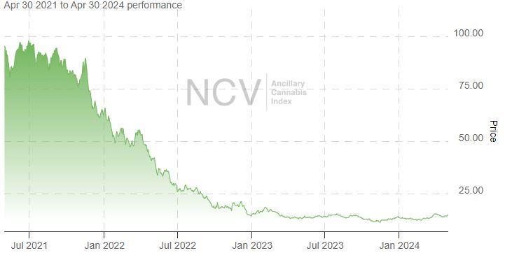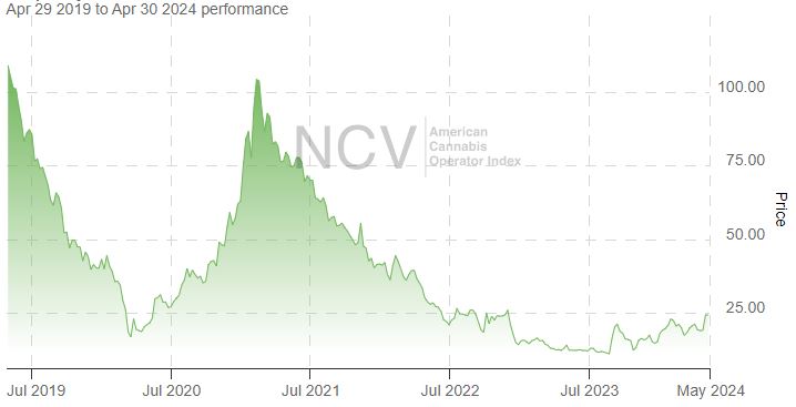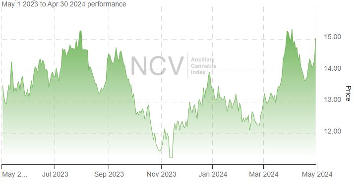 In 2023, the index rallied 7.6% to 15.34 despite the overall weakness in cannabis stocks, and a late January close was the highest close in over a year. In 2024, this index is now up 58.9%, with a new 52-week closing high: