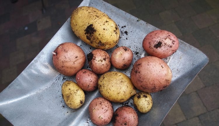 Potatoes can grow well in bags and containers such as an old garbage bin or large pot.